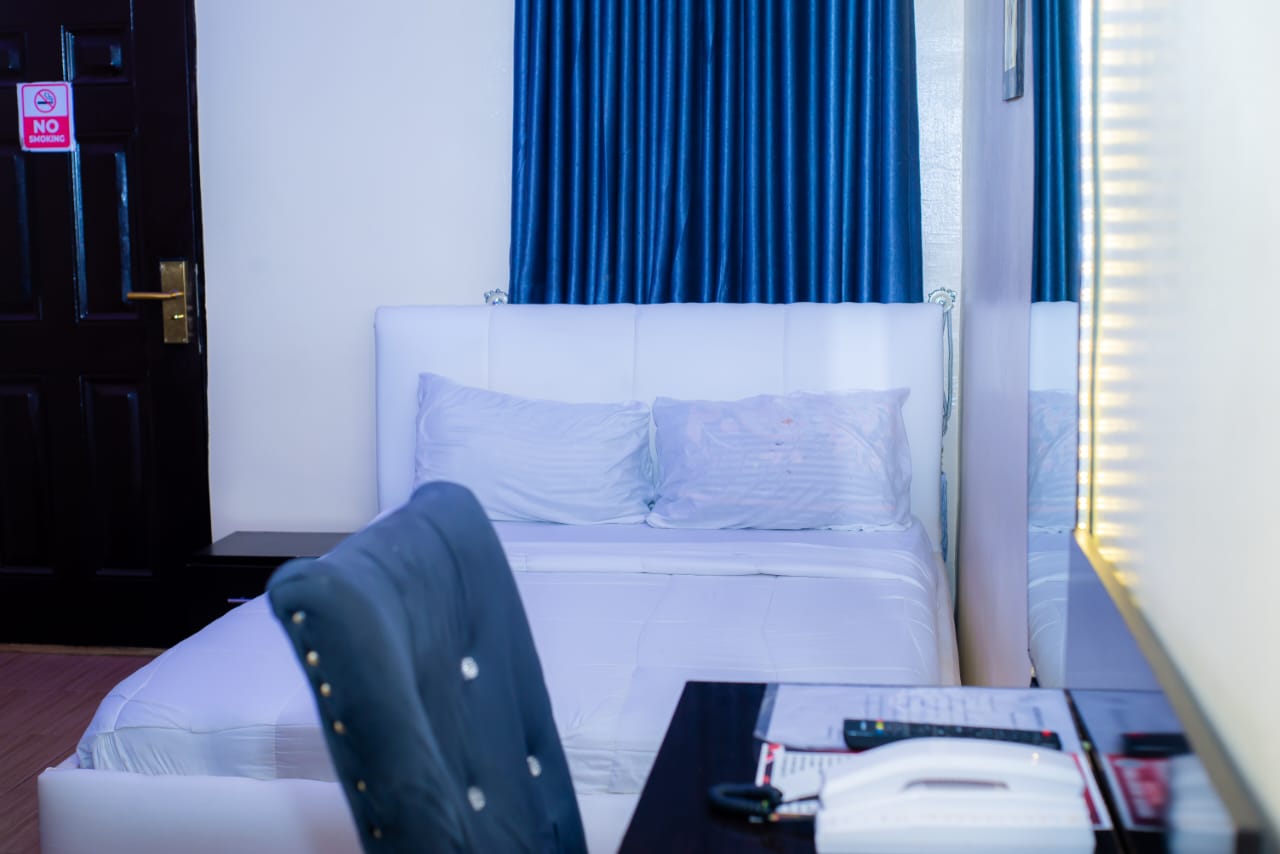 24 hrs power supply (inverter supply) 4x6 size bed AC (But always on at night because of no power supply within the community) Normal wardrobe Exquisite Room design Internet. TV.